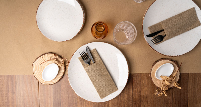 Este año, las servilletas con texturas suaves y formatos especiales, como las tipo portacubiertos, ganan protagonismo. No solo son prácticas, también aportan un toque de diseño que eleva la presentación de la mesa.